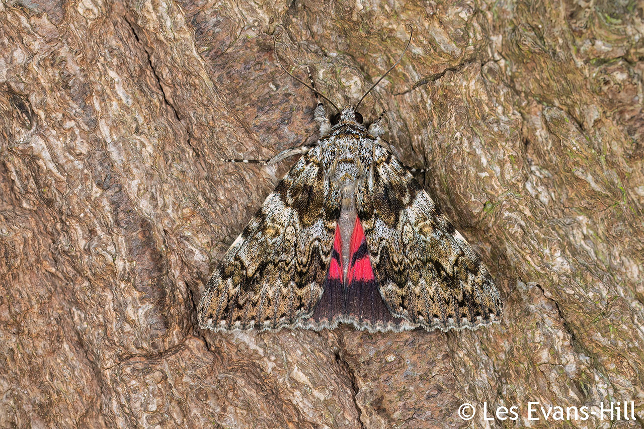 Account: A once rare but now increasing species, associated with ancient oak woodland in parts of southern England, a priority species under the UK Biodiversity Action Plan. At the turn of the century it was very much confined to the New Forest and two large woodlands in south Wiltshire, with occasional records from elsewhere in southern England, which may have resulted from internal dispersal or migration from the continent The most likely confusion species are Red Underwing C. nupta and Dark Crimson Underwing C. sponsa, and best distinguished from this by the shallow ‘W’ shape of the black postmedian cross-band of the hindwing. C. sponsa is larger (a subjective characteristic unless both seen together), and generally has a darker, more uniformly coloured forewing, with fewer patches of white scales near reniform stigma. Larva feeds on Pedunculate Oak and Sessile Oak, over-wintering as an egg.